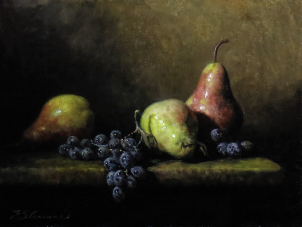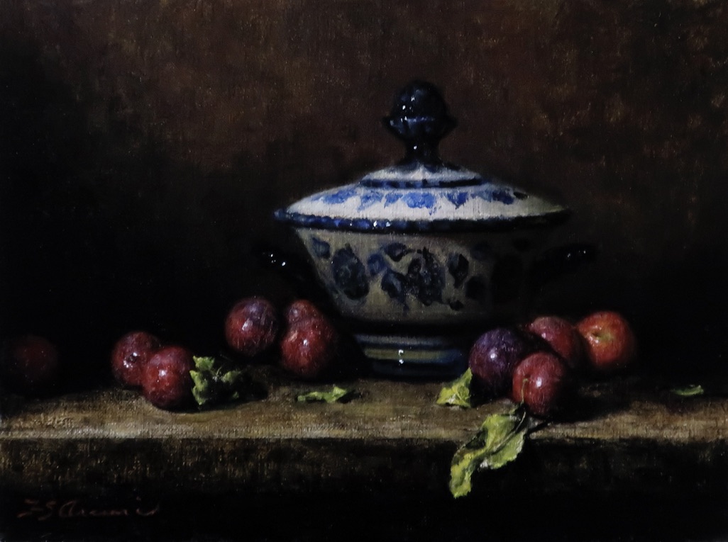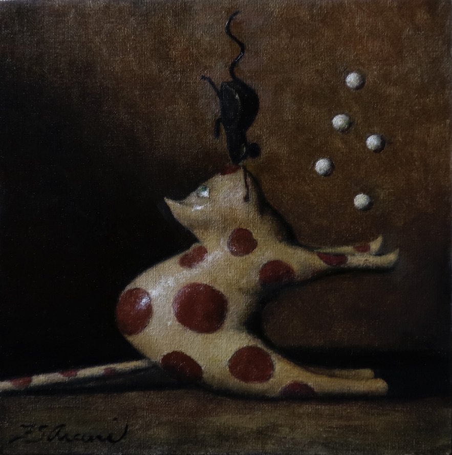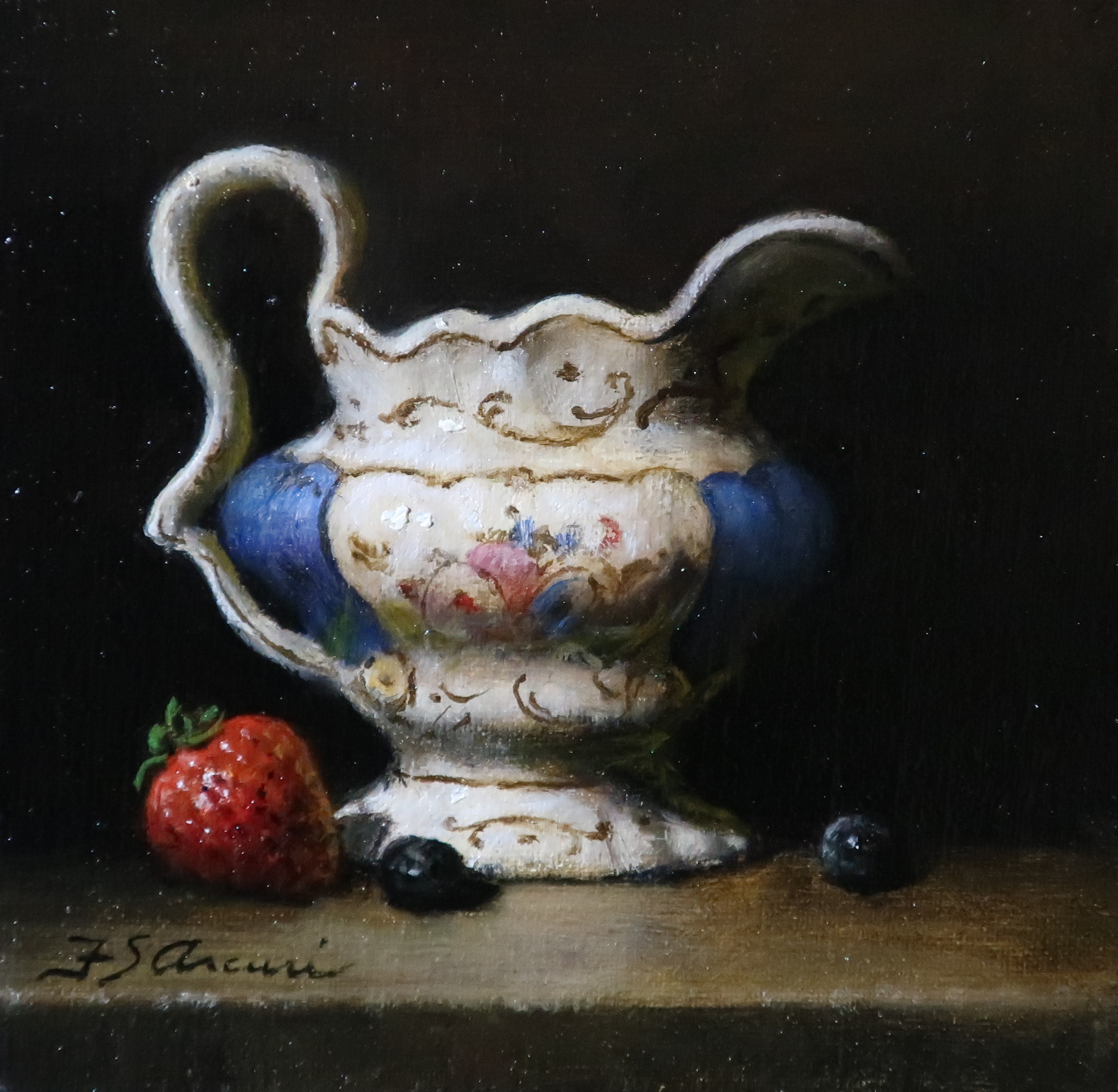 Still Life with Melon 16×12″“Afternoon Snack 15×12”Quintet 20×16″Pears and Grapes 12×9″Ode to Raphael 12×16″Story Time 24×20″Cat and Mouse 9×9″Small Pitcher with Berries 6×6″Still Life with Art Prints 20×16″Small Pitcher with Strawberry 6×6″On the High Wire 9×9″Decorative Bowl with Sugar Plums 12×9″